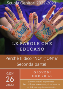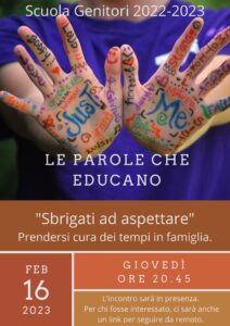9 Novembre 2022 By secras Avvisi / Generale / News 0 Comments Anche quest’anno proponiamo, con il nostro pedagogista Dr. Giovanni Forlani, la Scuola genitori: incontri per sostenere i genitori nel difficile compito di educazione e gestione dei propri figli.
