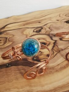 MANUFATTO 6: Bracciali in rame con pietre e vetro in varie colorazioni