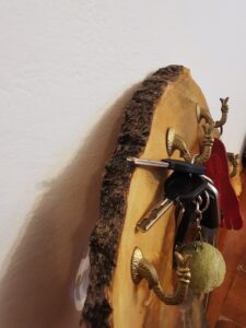 MANUFATTO 11: Porta chiavi da parete realizzato con legno di acero, ganci recuperati da un mercatino dell’usato